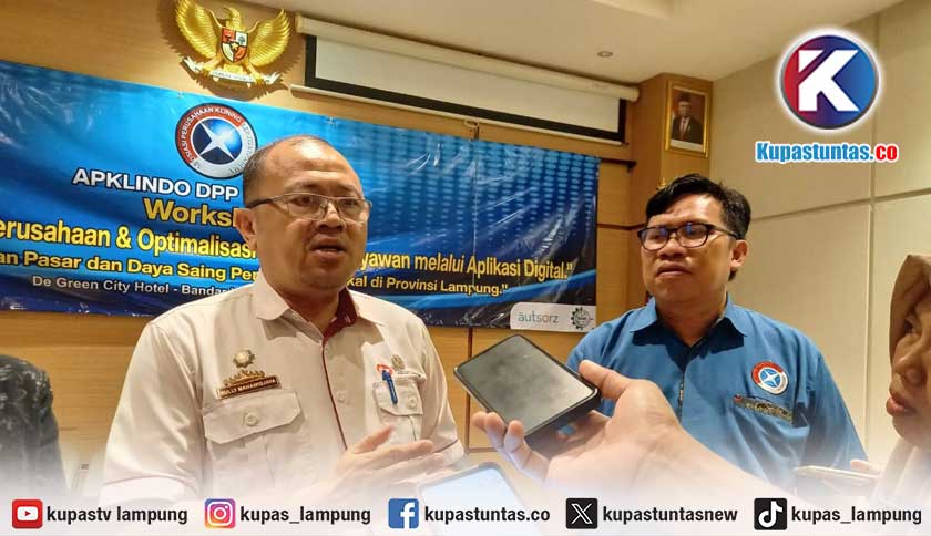 Ketua DPP APKLINDO, Ahmad Apriliandi Passa bersama Kepala Bagian (Kabag) di Biro Pengadaan Barang dan Jasa Provinsi Lampung, Rully Mahawijaya saat diwawancarai. Rabu, (6/3/2024). Foto: Sri/kupastuntas.co