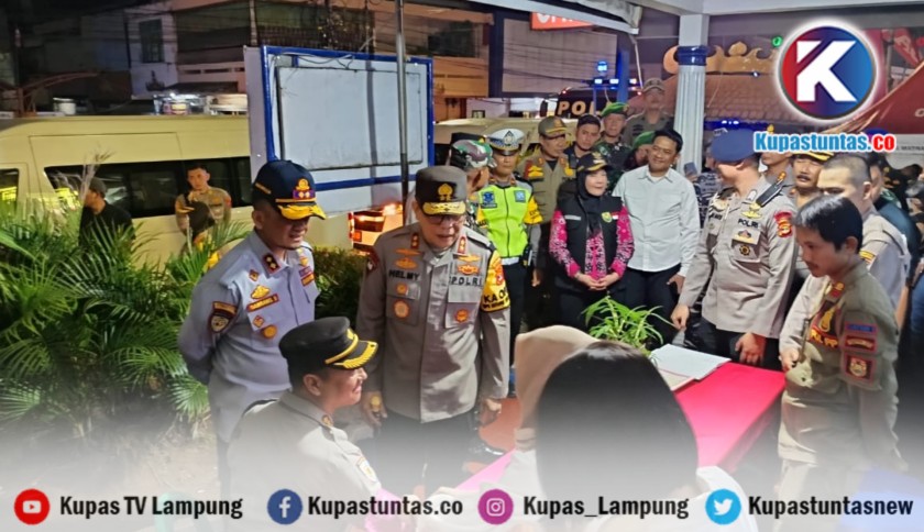 Kupastuntas.co, Bandar Lampung - Kapolda Lampung Irjen Pol Helmy Santika memantau patroli pengamanan malam takbiran Idul Fitri 1445 Hijriah.