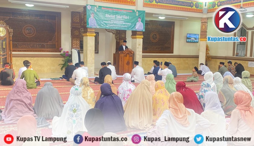 Kupastuntas.co, Bandar Lampung - Keluarga besar sivitas akademika Universitas Teknokrat Indonesia mengadakan salat ied di Masjid Asmaul Yusuf kampus setempat, Rabu (10/4/2024).