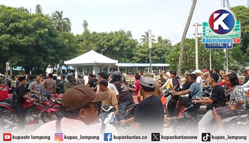 Tampak ratusan massa saat mengepung Kantor ASDP Cabang Bakauheni Jumat (21/6/24) siang. Foto: Handika/Kupastuntas.co