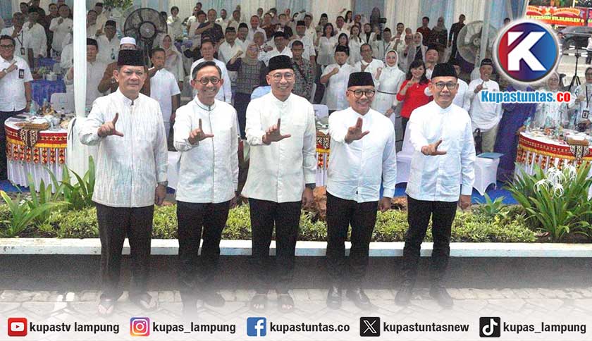 Kupastuntas.co, Bandar Lampung - Bank Lampung didapuk menjadi tuan rumah dalam silaturrahmi Lembaga Jasa Keuangan bersama Gubernur Lampung, dengan mengusung tema 'Merajut Ukhuwah dan Membangun Sinergi Pelaku Usaha Jasa Keuangan', Kamis (20/3/2025).