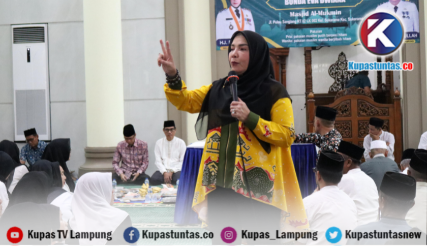 Eva Dwiana saat gelar safari Ramadhan di masjid Al Mukmin Sukarame. Foto: Ist