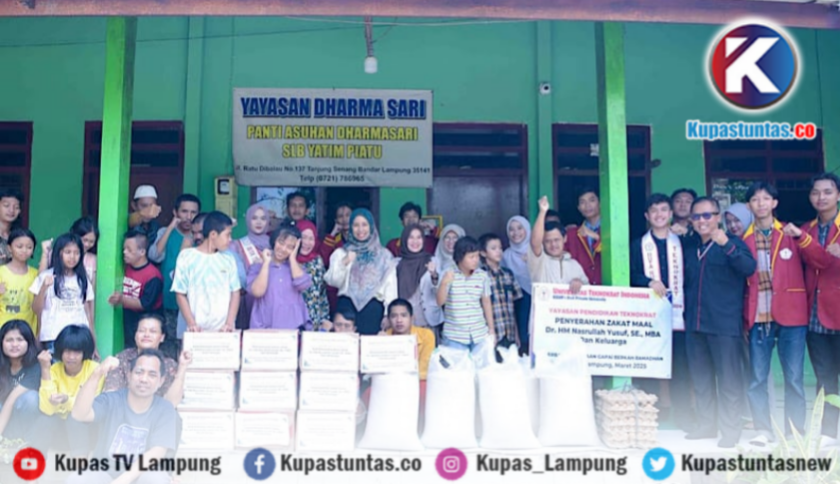 Kupastuntas.co, Bandar Lampung -Universitas Teknokrat Indonesia kembali menunjukkan kepeduliannya terhadap masyarakat dengan menyalurkan zakat mal kepada sejumlah panti asuhan di Bandar Lampung, Rabu (19/3/2025).