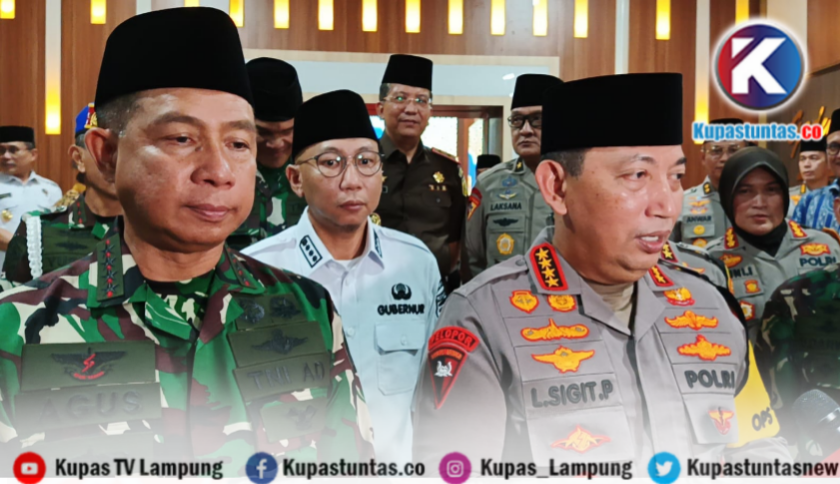 Kapolri Jenderal Listyo Sigit Prabowo dan Panglima TNI Jenderal Agus Subiyanto menghadiri safari Ramadan di Polda Lampung, Rabu (26/3/2025). Foto: Paulina/Kupastuntas.co