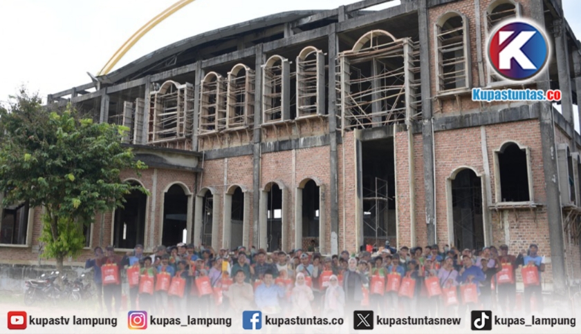 Universitas Teknokrat Indonesia Berikan Bingkisan Lebaran untuk Pekerja Pembangunan Masjid Al Hijrah Kota Baru, Foto:Ist.