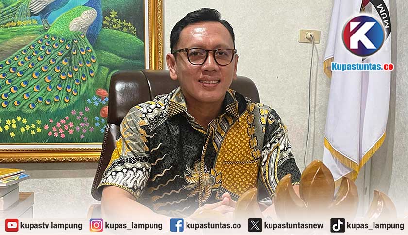 Ketua Divisi Data dan Informasi KPU Provinsi Lampung, Ervhan Jaya, saat dimintai keterangan di ruang kerjanya, Kamis (17/4/2025). Foto: Yudha/kupastuntas.co