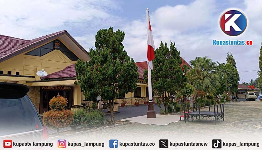 Bendera Merah Putih masih berkibar utuh di Mapolres Tanggamus. Foto: Sayuti/kupastuntas.co