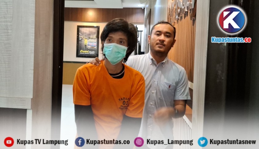 Pelaku pembunuhan saat diamankan di Mapolresta Bandar Lampung. Foto: Yudi/kupastuntas.co