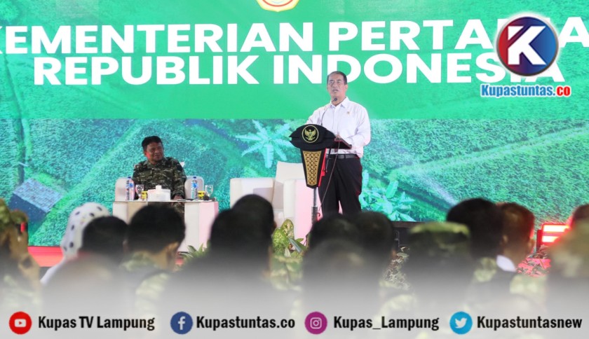 Kupastuntas.co, Bandar Lampung - Menteri Pertanian (Mentan) Andi Amran Sulaiman memberikan arahan penuh motivasi di hadapan ribuan peserta Jambore Kepala Desa se-Sulawesi Selatan yang digelar di Rindam XIV/Hasanuddin, Pakatto, Bontomarannu, Gowa, Jumat (12/12/2025).
