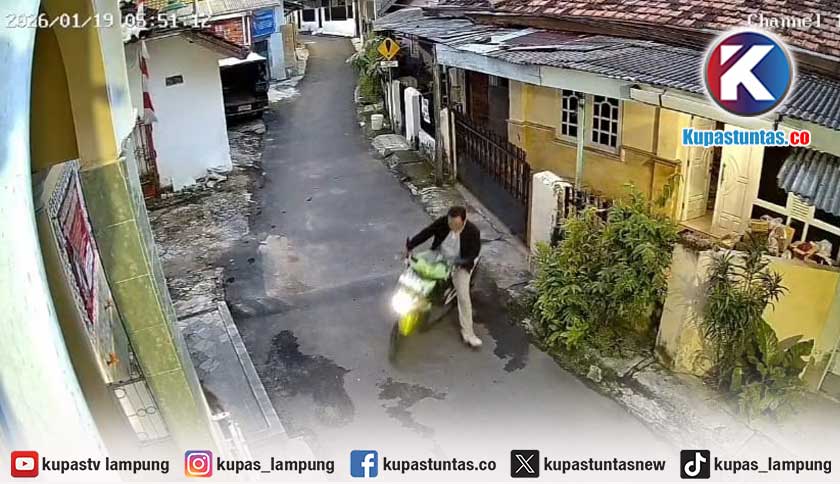 Kupastuntas.co, Bandar Lampung – Aksi pencurian sepeda motor terjadi di kawasan Jalan Rawa Subur, Kecamatan Enggal, Bandar Lampung, Senin (19/1/2026) pagi. Pelaku beraksi dengan tenang dan wajahnya terekam jelas kamera pengawas (CCTV).