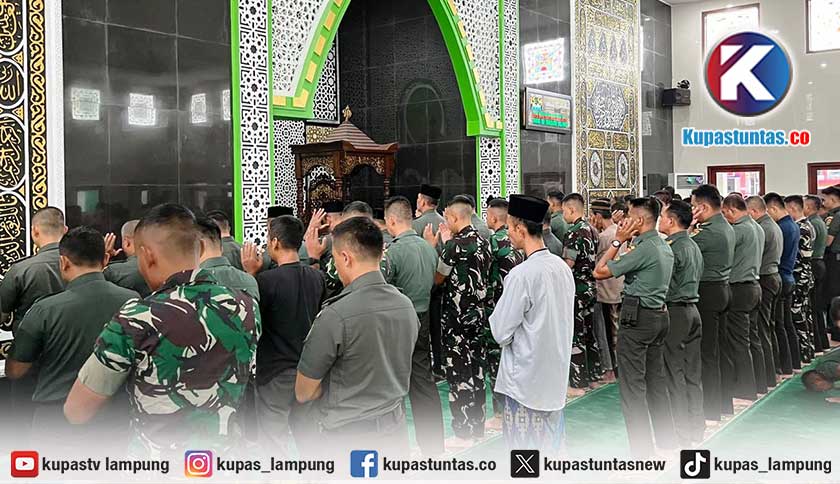 Kupastuntas.co, Bandar Lampung - Jajaran Komando Daerah Militer (Kodam) XXI/Radin Inten menggelar salat gaib dan doa bersama untuk para prajurit Korps Marinir TNI AL yang menjadi korban bencana tanah longsor di Desa Pasirlangu, Kecamatan Cisarua, Kabupaten Bandung Barat.