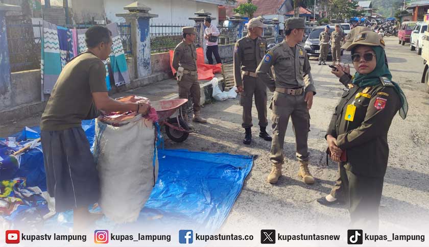 Kupastuntas.co, Lampung Barat - Pemerintah Kabupaten Lampung Barat melakukan penertiban pedagang kaki lima yang berjualan di