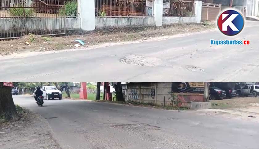 Tampak beberapa lubang di Jalan Pulau Damar, Kelurahan Way Dadi, Kecamatan Sukarame, Bandar Lampung, yang rusak parah dan dipenuhi lubang. Foto: Sandika/Kupastuntas.co