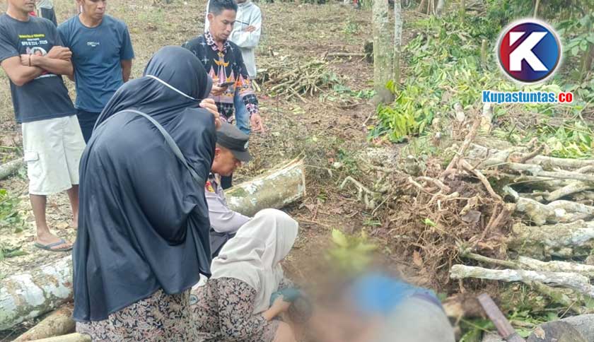 Kejadian memilukan itu pertama kali diketahui oleh Yato (68), warga yang hendak mencari rumput di sekitar lokasi kebun. Ia mendapati tubuh Kamilin sudah tergeletak di tanah, tertindih batang pohon besar.