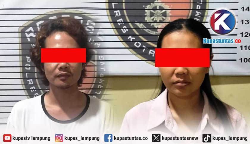 Kedua tersangka saat diamankan di Molresta Bandar Lampung. Foto: Ist.