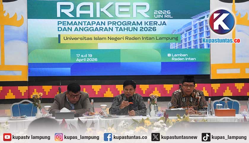 Kupastuntas.co, Bandar Lampung - Kepala Biro SDM Kementerian Agama RI, Dr. Muhammad Zain, M.Ag., memberikan arahan dalam Rapat Kerja Pemantapan Program Kerja dan Anggaran Tahun 2026 Universitas Islam Negeri (UIN) Raden Intan Lampung (RIL) di Lamban Raden Intan, Jumat (17/4/2026).