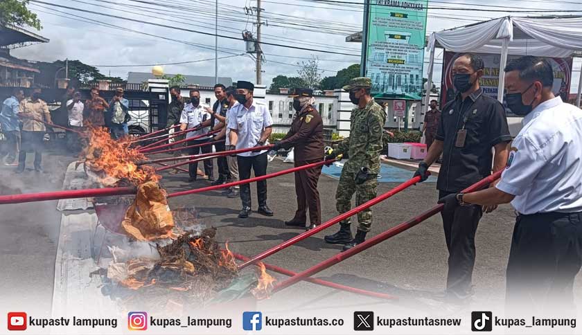Kejari Lampung Selatan Musnahkan Ribuan Gram Narkotika dan Barang Bukti 82 Perkara