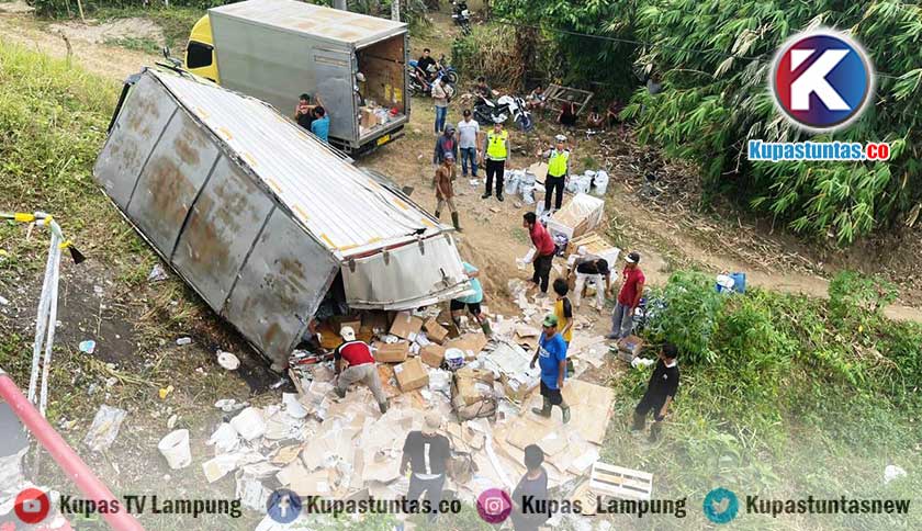 Hilang Kendali, Truk Box Terjun ke Jurang di Jalinsum Sukabaru Lamsel