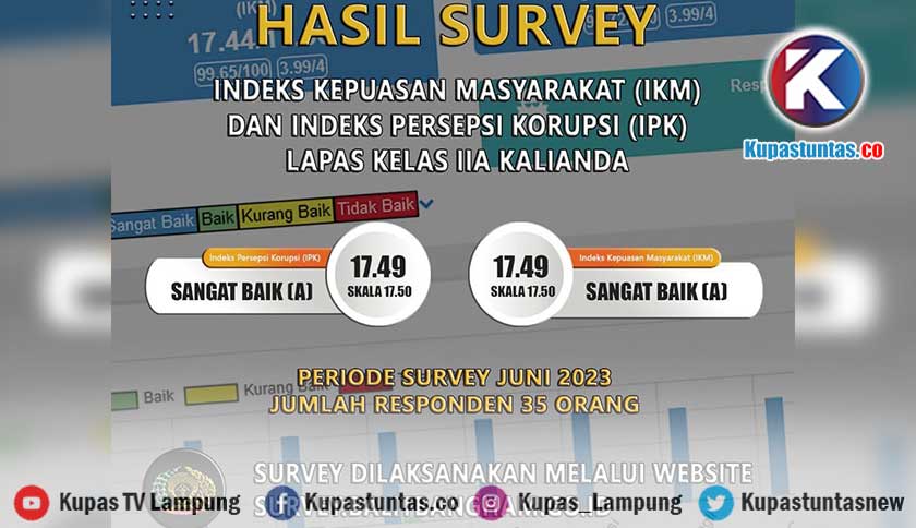 Mantap! Lapas Kalianda Raih Kategori A Survei Balitbang Kemenkumham RI
