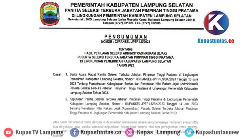 Catat! Berikut Peserta Lolos Seleksi Administrasi JPTP di Lamsel