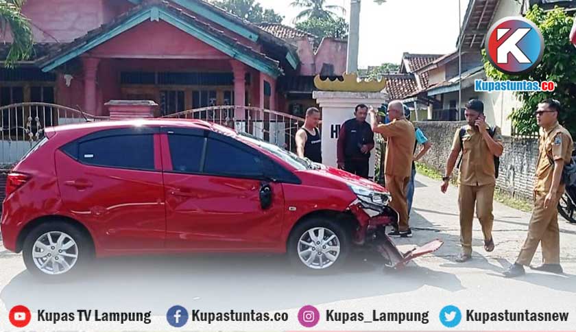 Honda Brio Senggol Pohon dan Terbalik Milik ASN Dinas Pertanian Lamsel