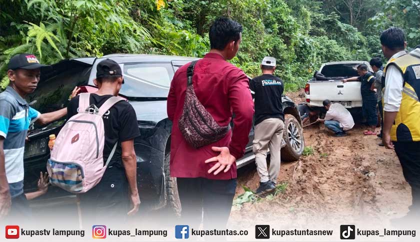 Mobil Rombongan Gubernur Lampung Terjebak Jalan Rusak Menuju Wisata Gigi Hiu