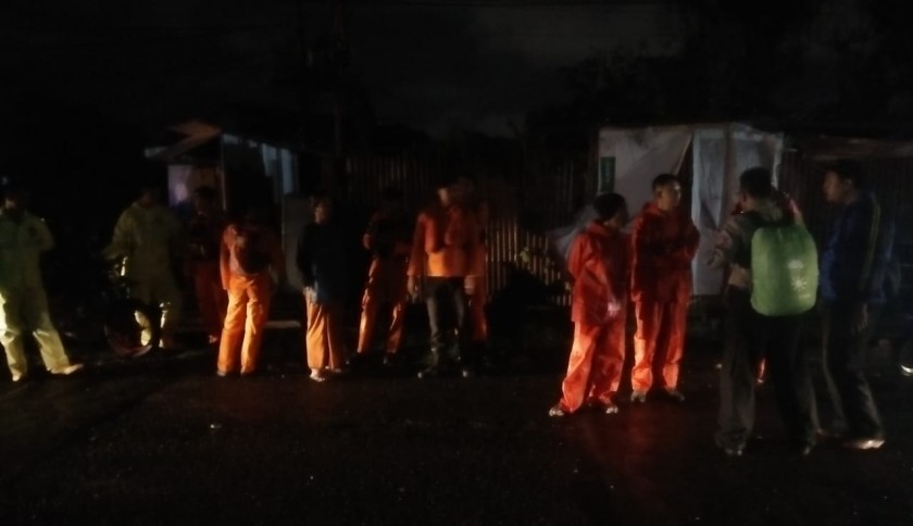 Terlihat petugas gabungan sedang bersiaga untuk melakukan penelusuran sepanjang aliran kali, Selasa (7/1/2020). Foto: Sulaiman/kupastuntas.co