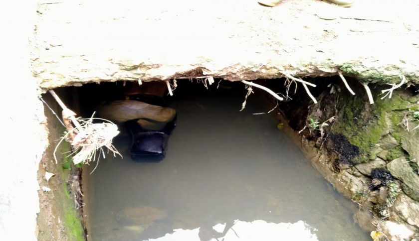 Penampakan mayat laki-laki yang berada di gorong-gorong siring, di jalan Pulau Sebesi, Kelurahan Sukarame, Rabu (08/01/2020). Foto: Sulaiman/Kupastuntas.co