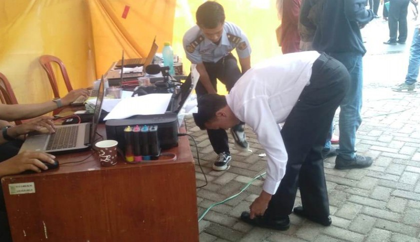 Peserta CPNS Kemenkumham meminjam sepatu panitia. Foto: Siti/Kupastuntas.co