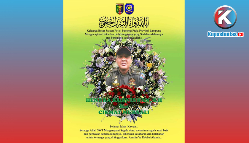 Bandar Lampung - Berita duka datang dari Satuan Polisi Pamong Praja (SatPol PP) Provinsi Lampung. Salah satu anggota terbaiknya bernama Hendra Kurniawa tutup usia pada, Minggu (5/4/2020).