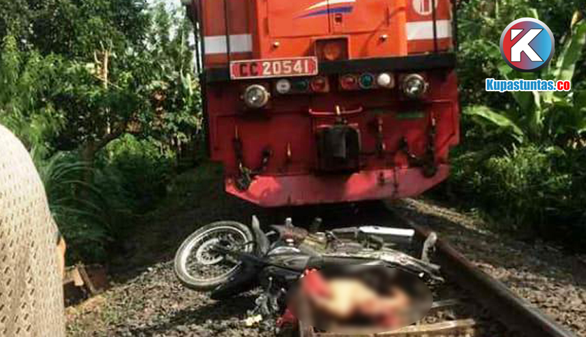 Kupastuntas.co, Bandar Lampung - Dua pengendara motor tewas di tempat setelah tertabrak kereta api batu bara rangkaian panjang (KA Babaranjang), di perlintasan tanpa palang pintu di bawah Fly Over jembatan layang, Kecamatan Natar, Lampung Selatan. Jumat (8/5/2020).