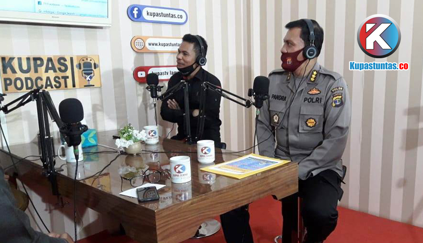 Kabid Humas Polda Lampung, Kombes Pol Zahwani Pandra Arsyad, saat mengikuti Kupas Podcast di Studio Podcast Kupas Tuntas, Selasa (09/06/2020). Foto: Sule/Kupastuntas.co