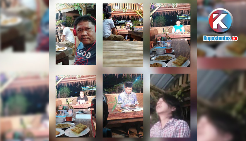 Beberapa tokoh saat membacakan karya Isbedy Stiawan ZS di Kedai Taman Untung, Labuhanratu, Bandarlampung, Senin (8/6/2020) malam. dan live di Facebook. Foto: Ist.