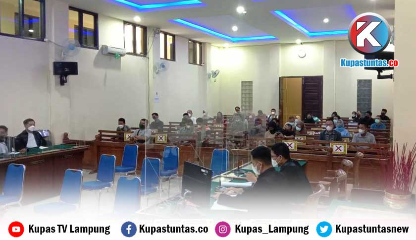 Suasana persidangan perkara korupsi bantuan benih jagung di Pengadilan Negeri Kelas IA Tanjungkarang, Kamis (10/2/2022). Foto : Martogi/Kupastuntas.co