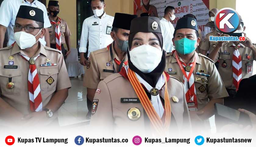 Walikota Bandar Lampung, Eva Dwiana, saat dimintai keterangan usai pembukaan Muscab Pramuka, Rabu (16/2/2022). Foto: Sri/Kupastuntas.co
