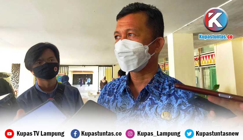 Kepala Badan Kepegawaian Daerah (BKD) Provinsi Lampung, Yurnalis, saat dimintai keterangan di kantor Diskominfotik Provinsi Lampung, Kamis (17/2/2022). Foto:Ria/kupastuntas.co