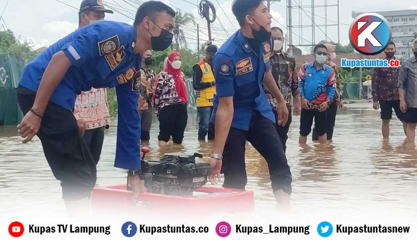 Kupastuntas.co, Bandar Lampung - Pemerintah kota (Pemkot) Bandar Lampung menurunkan sejumlah armada untuk menyedot air banjir di Jalan ZA Pagar Alam, Rajabasa atau tepatnya didepan pembangunan Living Plaza, agar cepat surut, Kamis (10/3/2022).