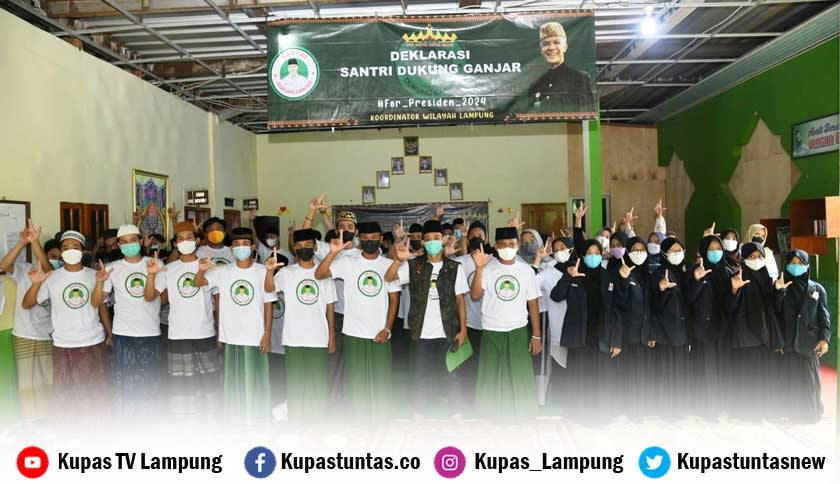 Kupastuntas.co, Bandar Lampung - Dukungan Gubernur Jawa Tengah, Ganjar Pranowo semakin menguat di sejumlah daerah di tanah air. Salah satunya dari ratusan santri milenial dan alumni Pesantren di Kota Bandar Lampung.