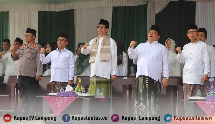 Berbalut gaya santri, lengkap dengan sarung dan baju putih, berbagai kalangan yang terdiri dari Pemerintah Provinsi Lampung, Kanwil Kementerian Agama (Kemenag) Provinsi Lampung, Forkopimda, Ormas Keagamaan, Ponpes dan peserta didik MIN 5 Bandar Lampung, MTs Negeri 2 Bandar Lampung, MAN 1 Bandar Lampung, serta Mahasantri Ma’had Al Jami’ah mengikuti Peringatan Hari Santri di UIN RIL.