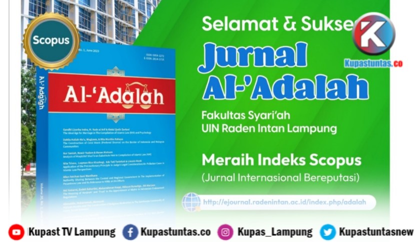 Kupastuntas.co, Bandar Lampung - Jurnal Al ‘Adalah milik Fakultas Syariah (FS) Universitas Islam Negeri (UIN) Raden Intan Lampung (RIL) berhasil menjadi jurnal terindeks Scopus pertama di UIN RIL.