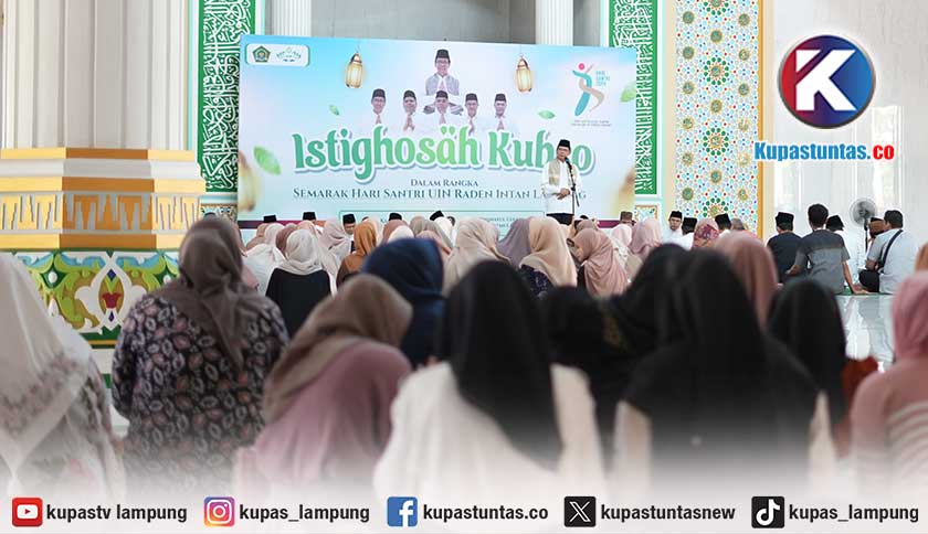 Kupastuntas.co, Bandar Lampung - Dalam rangka semarak memperingati Hari Santri Nasional yang jatuh pada setiap 22 Oktober, Universitas Islam Negeri (UIN) Raden Intan Lampung (RIL) menggelar Istighosah Kubro di Masjid Safinatul Ulum, Kamis (24/10/2024).