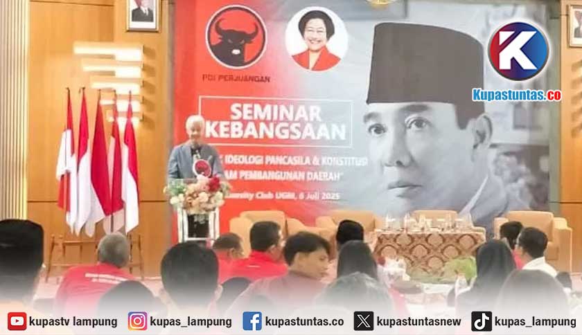 Kupastuntas.co, Bandar Lampung – Ketua DPP PDI Perjuangan Bidang Pemerintahan dan Otonomi Daerah, Ganjar Pranowo, menegaskan bahwa ideologi Pancasila harus menjadi panduan utama dalam penyelenggaraan pemerintahan, bukan sekadar teks yang dibacakan.