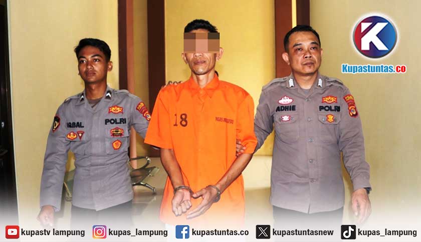 Tersangka saat diamankan di Mapolres Pringsewu. Foto: Ist.