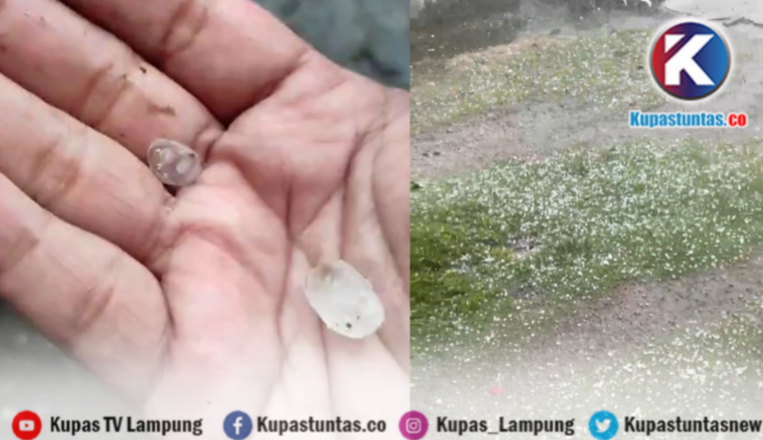 Video yang diterima Kupas Tuntas memperlihatkan butiran es menghantam atap rumah warga dan menimbulkan suara keras seperti dilempari batu.