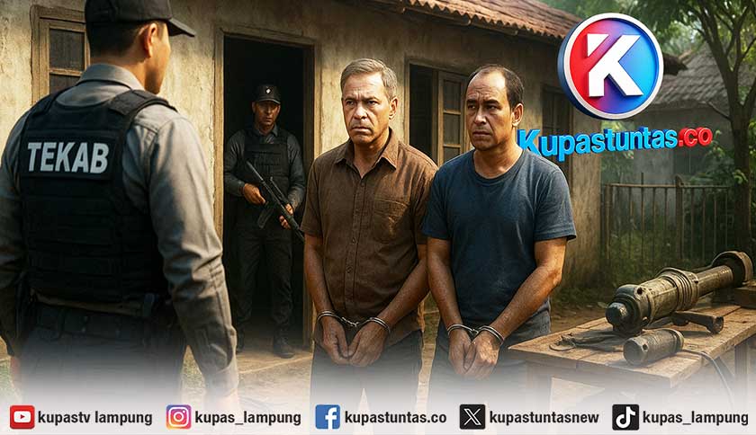 Polisi dari Tekab 308 Presisi Polsek Terbanggi Besar merangsek masuk ke halaman, memutus kesunyian yang selama ini menyelimuti rumah tersebut.