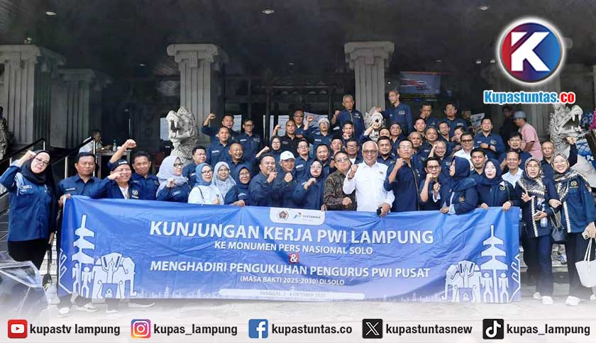Kupastuntas.co, Solo - Persatuan Wartawan Indonesia (PWI) Provinsi Lampung bawa 70 orang pengurus hingga para ketua PWI kabupaten/kota se-Lampung hadiri pengukuhan pengurus PWI Pusat periode 2025-2030 di Monumen Pers Nasional Solo, Jawa Tengah, Sabtu (4/10/2025).