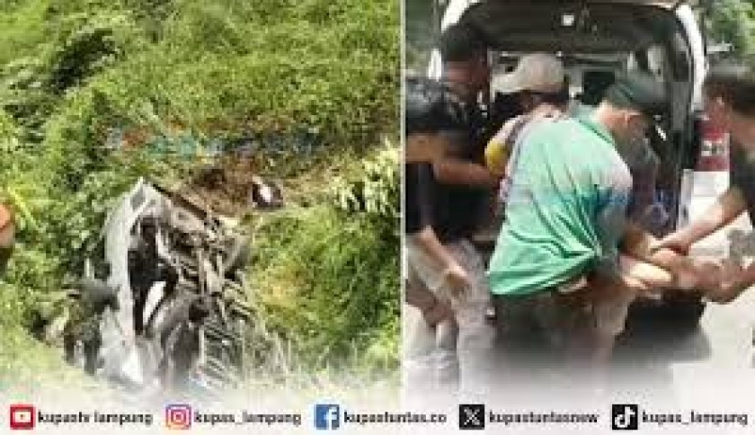 Kupastuntas.co, Tanggamus – Perjalanan rombongan keluarga pengantin asal Bogor, Jawa Barat, berakhir tragis saat minibus yang mereka tumpangi masuk ke jurang di tanjakan Sedayu, Kecamatan Semaka, Kabupaten Tanggamus, Lampung, Minggu (5/10/2025) siang. Dua orang dilaporkan meninggal dunia, sementara belasan lainnya mengalami luka-luka.