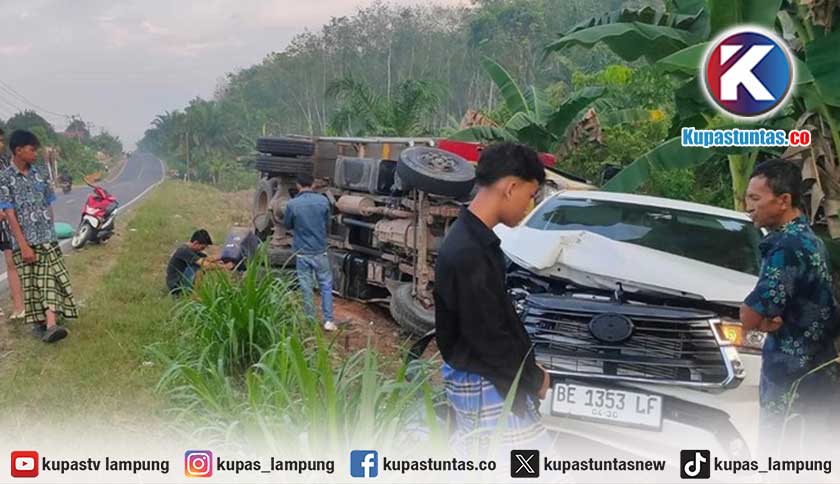 Truk Hantam Dua Mobil Innova di Way Kenanga Tubaba, Dua Orang Tewas