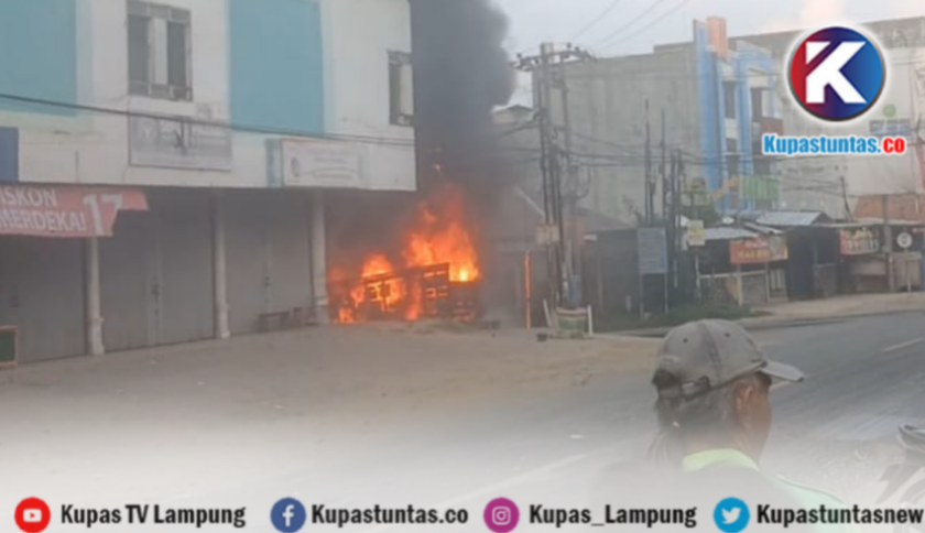 Mobil Truk di Pertigaan Jalan Pasar Sarinongko Pringsewu ludes terbakar, Minggu (12/10/2025). Foto: Manalu/Kupastuntas.co