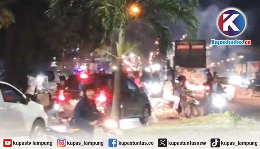 Kupastuntas.co, Bandar Lampung - Warga sekitar Flyover Kalibalok, Jalan Bypass Soekarno-Hatta, Kelurahan Kali Balau Kencana, Kecamatan Sukabumi, Kota Bandar Lampung digegerkan oleh aksi tawuran antar pelajar, pada Senin (13/10/2025) malam.